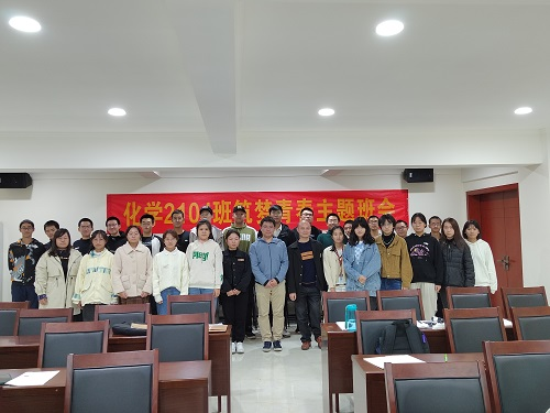 的化学专业的,班上超过半数的同学举起了手,于是,王老师就此展开发言,称兴趣是最好的老师,但光感兴趣是不行的,还需要为之付出努力。接着,王老师又讲了讲他的大学生活以及自己的本科经历,说自己大一大二根本就不是什么优秀学生,直到大三才开始思考自己未来要干什么,最后才选择了科研这条路,并提出科研的意义就在于当你解决一个问题后,又会出现一个新的问题使你不断思考下去。这段话让同学们受益良多。最后,王老师说自己每天坚持背五条英语短句,就这样坚持到现在,以此来号召同学们养成坚持的好习惯,并就学习能力,动手能力,想象力三种希望同学们掌握的能力作为结束,收获了大家的热烈掌声。会议末尾,辅导员张子政老师上台总结,在对班会提出表扬的同时,又指出本次班会存在的问题,希望下次能办的更好,讲话最后,张子政老师说:“大的理想要有,小的目标也要有”,到此整个班会结束。