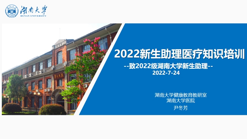 、法学院、文学院、材料科学与工程学院与工程管理学院联合举行,培训内容主要围绕新生生活指导、急救及传染病的防护措施进行展开,尹冬芳老师综合运用图文事例及视频向各位新生助理们生动讲述了新生如何适应长沙的生活,面对中暑晕厥等问题如何处理以及传染病的个人防护相关措施,提高学生助理的急救意识和自救互救能力,并向各位新生助理解答了如何快速帮助新生适应新生活等相关问题。