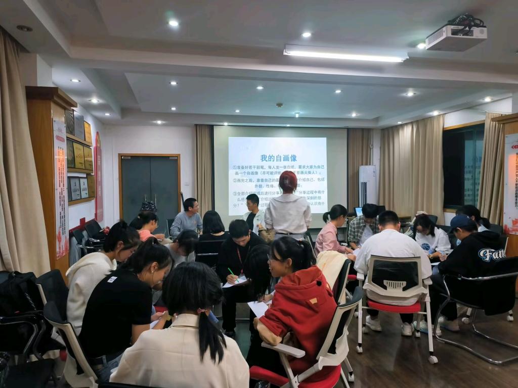 为了建立心理委员与年级会各干部间的友谊,进行成员间沟通、交流和保证后续各班的团体辅导顺利开展,本次团体辅导活动由滚雪球、解手环、你划我猜和我的自画像等充满趣味且富有意义的游戏环节组成,现场十分活跃。