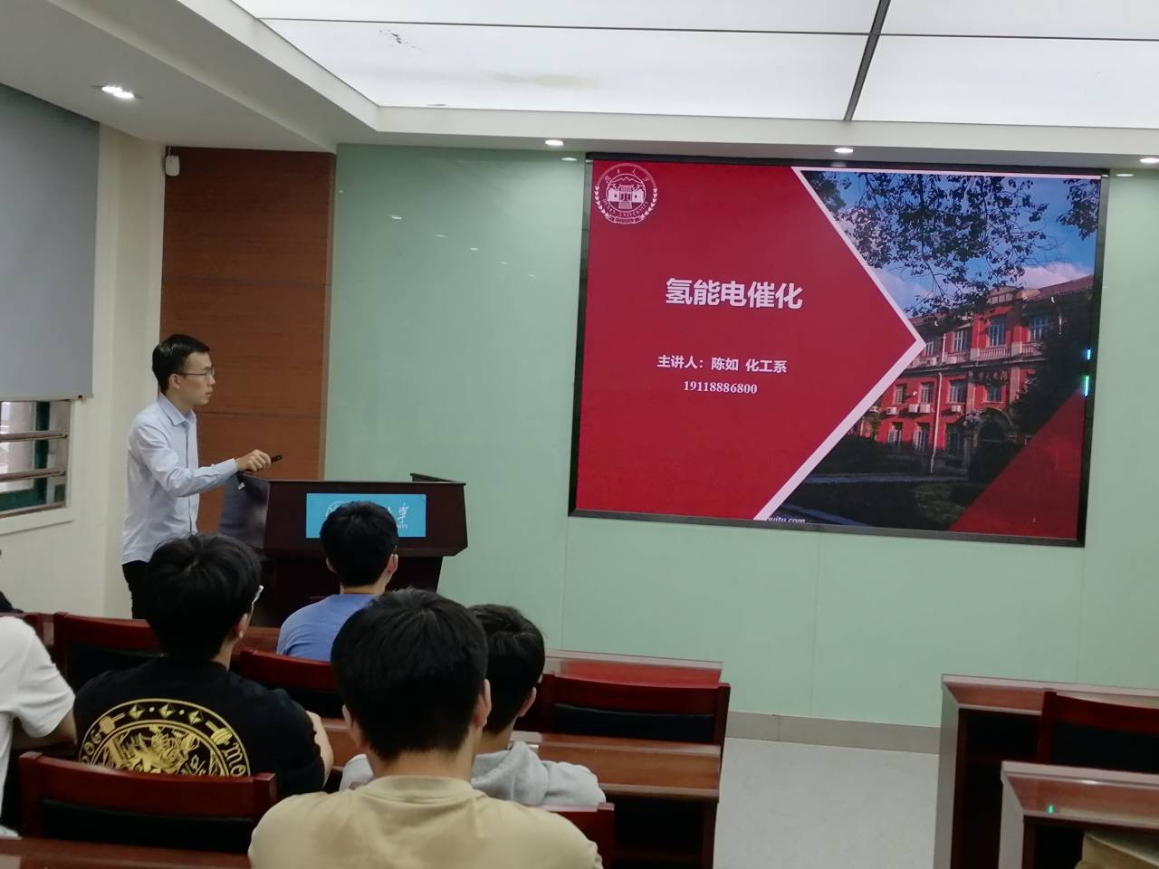 陈如导师作为该领域的权威专家,长期从事氢能电催化方面的研究,并取得了一系列重要成果。他的研究团队致力于探索高效、低成本的制氢技术,以推动清洁能源的发展和应用。此次微讲堂活动是他与学生们分享自己的研究成果和研究经验。