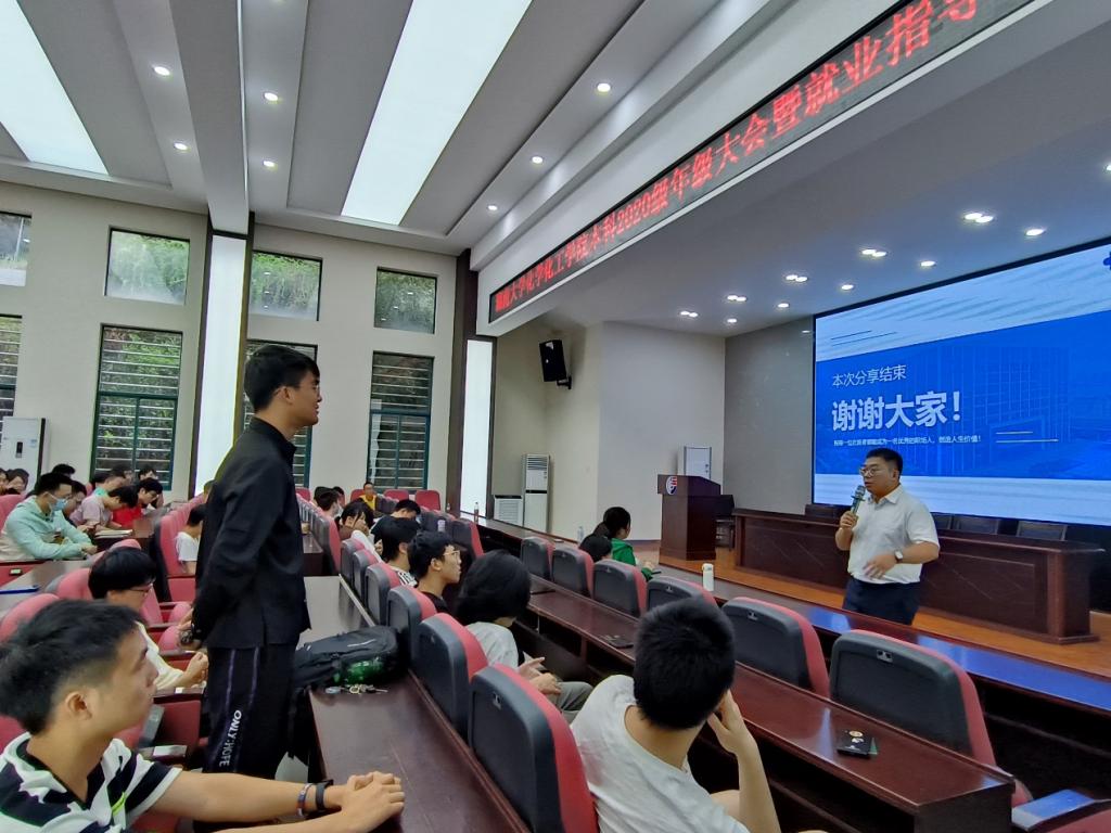 紧接着,会议邀请了华友钴业镍产业集团招聘管理部部长王欣子为同学们做就业指导。指导会为同学们贴心地提供答疑环节,王欣子部长对同学们秋招遇到的问题做了详细解答,同学们收获颇丰。