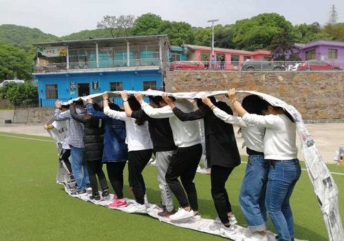最后是“无敌风火轮”,各小组用提供的报纸、剪刀、胶布将报纸连接成一个巨大的“风火轮形状”,各小组成员站在自制的“风火轮”里齐心协力,走完规定路程。恰似活动主题“一路上有你”,大家也从这段小小路程的合作中感受到了同伴和团队的力量,尤其是第四组,他们在最后的关头明知落后,与冠军无缘,还是努力的踏着整齐的口号坚持走完全程,虽败犹荣。而在以后的人生旅途中,相信也一样会有同学和化工院伴君前行,集梦飞翔!
