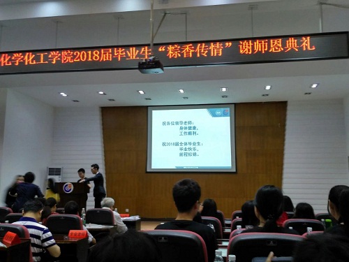 2018届毕业生和学院领导,班导师及各位任课老师们齐聚报告厅,参加“粽香传情”谢师恩典礼。这是一场告别典礼,18届毕业生即将告别老师,开始他们人生的另一段旅程;这是一场告白典礼,学生告白老师,感谢他们四年来的谆谆教诲!