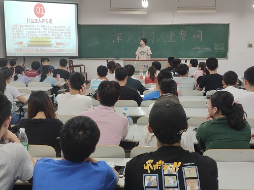 党课开始,张寒松同志给大家讲解了什么是入党誓词,入党誓词是成为预备党员后,在入党宣誓仪式上需要宣读的誓词。入党誓词不仅仅是一段话,它包含着党员对党组织、国家的一种承诺,需要用行动去履行的。接着,张寒松向大家展示了入党誓词的演变历程。从建党初期的“牺牲个人,永不叛党”,到抗战时期的“做群众的模范,对党有信心”,再到现在的“为共产主义奋斗终身”,从入党誓词的演变中我们可以了解到一个国家的变化,党组织在逐步壮大,国家也在日益强盛。