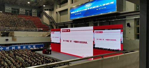2019级本科新生入学教育“爱国奋斗正当时,建功立业新时代”在南校区体育馆举行。