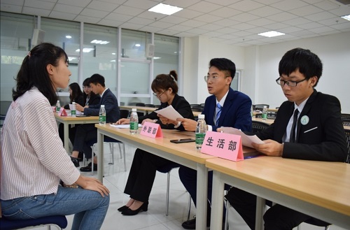 面试的部长们身穿正装并佩戴学生会会徽,看起来严肃而又庄重,让很多同学原本紧张的心更加不安了,事本准备的很多东都忘记了,但是这并不妨碍同学们的热情,他们对所提出的问题认真作答,言谈举止中流露出对学生会工作的真挚渴望。他们敢于表现自我的信心,更展现出自身良好的素质和修养,体现了当代大学生敢于挑战自我的决心和勇气。化工1903的詹雅婷同学面试完说:“学长学姐们都挺温和的,学姐还很喜欢笑。带我们下楼那个学姐和我们聊天,不仅说学长学姐看着严肃其实都超好的,还给我们介绍各种部门,让我感觉没有那么紧张了。”