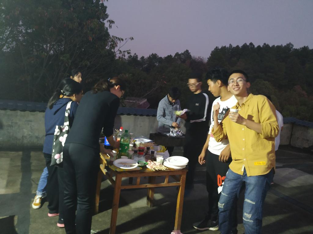 活动开始,由班长林锦聪组织全班同学们进行自助烧烤。大家进行分工购买烧烤食材,来到场地后自觉洗菜、串串、烧烤……同学们互相帮助,说说笑笑之间放松了心情,拉进人与人之间关系。而且通过活动加强了团队协作能力,增强团队凝聚力,增进同学之间的情感。