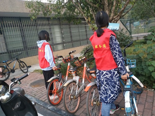 活动中,志愿者不仅引导同学们摆放自行车、电动车,提醒并帮助同学们养成整齐停车的意识与习惯,还对随意停放的车辆进行规范摆放,使停车点的面貌焕然一新,减轻了校区及园区的安保人员的工作压力。