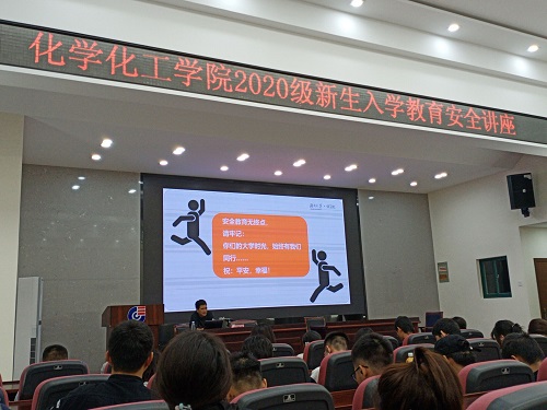 保卫处的朱群峰老师为化工院20级的新生们普及安全知识。