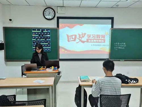化学类2006班于研究生楼顺利开展“四史学习教育,彰显青年担当”主题班会。此次班会由团支书蔡明彤主持,化学类2006班全体参加,无一缺席。