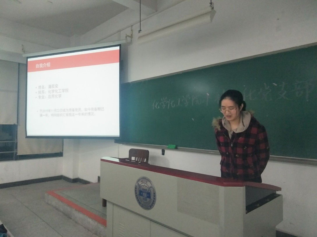 化学化工学院本科应化党支部在综合楼114教室召开预备党员转正大会,支部党员参加本次会议,会议由党支部副书记于哲同志主持。