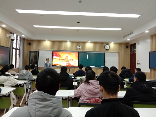 随后,尹文婷讲述了应征入伍的优待政策及应征程序。大学生应征入伍服兵役后,可享有四个“四个优先”、学费补偿、部队津贴、税费减免、就业服务等政策,家庭按规定享有军属待遇。这让大家明白了国家对大学生应征入伍的鼓励与支持,更让大家体会到了做一名军人的无上荣光。