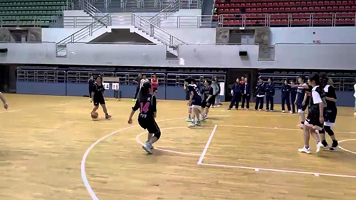 比赛开始,双方跳投并由化工院左银同学拍至己方半场,7号赵艳萍同学抢到球顺势上篮得分,比数二比零。随后,土木院发球,并在其半场内频繁传导球,他们的12号队员找到空位,投篮得分。比分追平。在后来的两节比赛时间里,化工院虽进攻快速推进,防守得当,但土木院以8号队员为中心展开进攻,在外侧多次投篮得分将比分拉至十五比八。