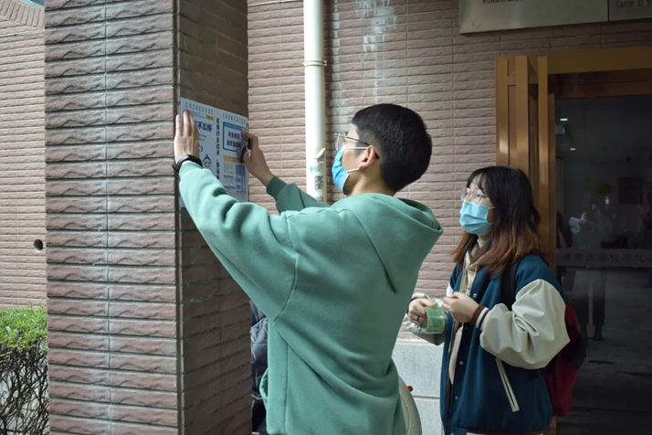最后,化工院研究生会的同学们在各实验室楼道张贴宣传海报,提醒大家疫情防控常态化人人有责,要做到戴口罩、勤洗手、常通风、少聚集。