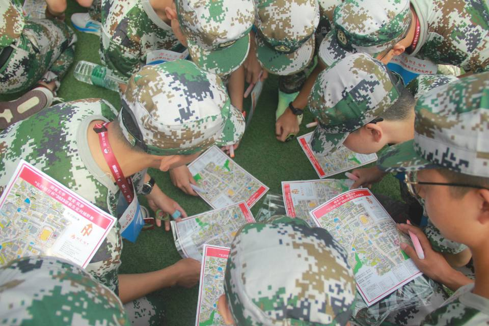 分发地图后,团队赛的同学们团结协作,开启了激烈的讨论,分配任务、设计打卡路线,合作才能更好地向前。