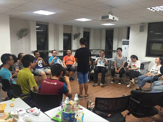 九点刚过,综合楼407教室已然变样,教室的中央,环成一圈的18个椅子虚位以待,黑板上红色描边的“辩论队见面会”气势十足,而辩论队全体老成员或坐或立,一遍又一遍地交流着接下来见面会的流程和细节。