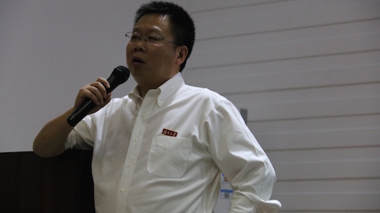 之后石先生着重讲述了自己的创业经历,也谈到了龙蟠公司名称的由来。他希望“龙蟠”这个充满中国特色的词语能够让人们知道中国人自己也能做好润滑油,能够证明中国制造不逊色于其他任何一个国家开发的产品。不仅如此,龙蟠公司的标识也同样代表着中国文化,石先生解释说标识是以四滴液体为主体,外圆内方,象征着公司对外能够圆而适应市场,对内而方能有原则,传承了中国文化的优秀传统。