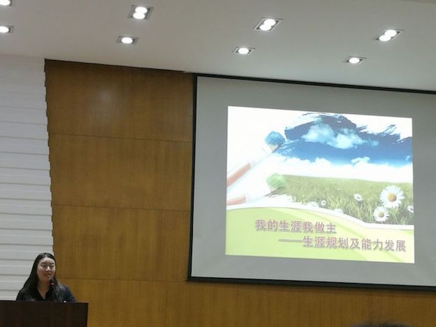 刚刚步入大学的新生,面对全新的环境和未知的一切,对未来难免会有迷茫。因此,曾芷兰老师适时给予了迷茫的16级新生们关于生涯发展与规划的建议。会上她提出了实现生涯规划的“三步走”:首先了解自己,再通过各种企业家讲座等去了解外部社会的需求,与未来社会可能的发展轨迹,最后进行调整,将目标落到实处。既清晰辨析了误区,又提出行之有效的方法,简短精炼的讲话中浓缩了不少金玉良言。