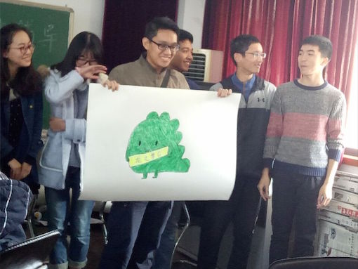首先,刘卓老师采取报数的方式将同学们分成了五队,并规定在十分钟内要完成以下任务:选出队长;确定团队名称;用画笔和白纸绘制出队旗。有的队伍先各自冥思苦想再汇总意见,投票决定最终方案;有的队伍则采取讨论的方式,在激烈的交流中碰撞出灵感的火花。第一组根据队员间的共同特征命名队名并制作队旗;第二组根据队员姓名缩写制定队名,并在对其上画了他们的吉祥物小恐龙;第三组则以三个寓意深刻的英文单词为中心,设计了别具一格的队旗;第四组和第五组则分别以三硝基甲苯和六氯苯为设计核心,展现出化学专业特色。各组设计的队旗风采各异,都博得了同学们的赞赏。