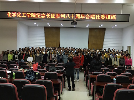 合唱队早在11月初便开始了每周固定三次的排练,排练地点为化工院报告厅,由已经退休的彭小平老师负责指导,曾芷兰老师负责管理。