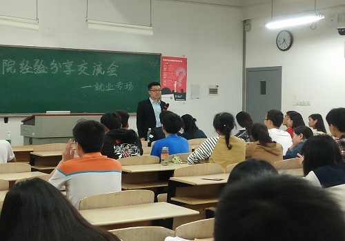 部分同学参与此次交流会。此次交流旨在通过学长学姐的经验谈,为已经笃定方向,但无从下手的大三学生指点迷津,为他们找工作提前做好准备,以充足的资料来应对就业大潮;也同时为尚在迷茫状态的大二大一的学生们提供参考,让他们更好地思考今后的方向,找到适合自己的道路。