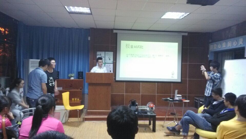 活动开始前,负责人先为大家分发了一部分零食和饮料,现场的气氛在大家愉快的吃喝中立即活跃起来。接下来,三大社长一一出场,为大家介绍了各自的社团。极音HiFi社长王梓涵,为大家普及了耳机知识,并做出了HiFi名词解释,更有创意活动及工作构想呈现给大家,让在场观众畅游了一番高科技的世界,对于新兴高科技产品产生了更大的兴趣并有了对这一行业的初步了解。摄影大神田逸伦为大家展示美爆图片,图说湖大,带大家体会残缺美感,对湖大秀美风光更添了解,同时也对热爱摄影的同学们起到了入门引导的作用。而动漫社小花社长王则呈则为大家介绍了社团里cisplay,cos,cv,宅舞等七个部门,并仔细讲解了各个部门的不同任务。更有带来超级好看视频,让大家享受了一场动漫带来的视听盛宴。