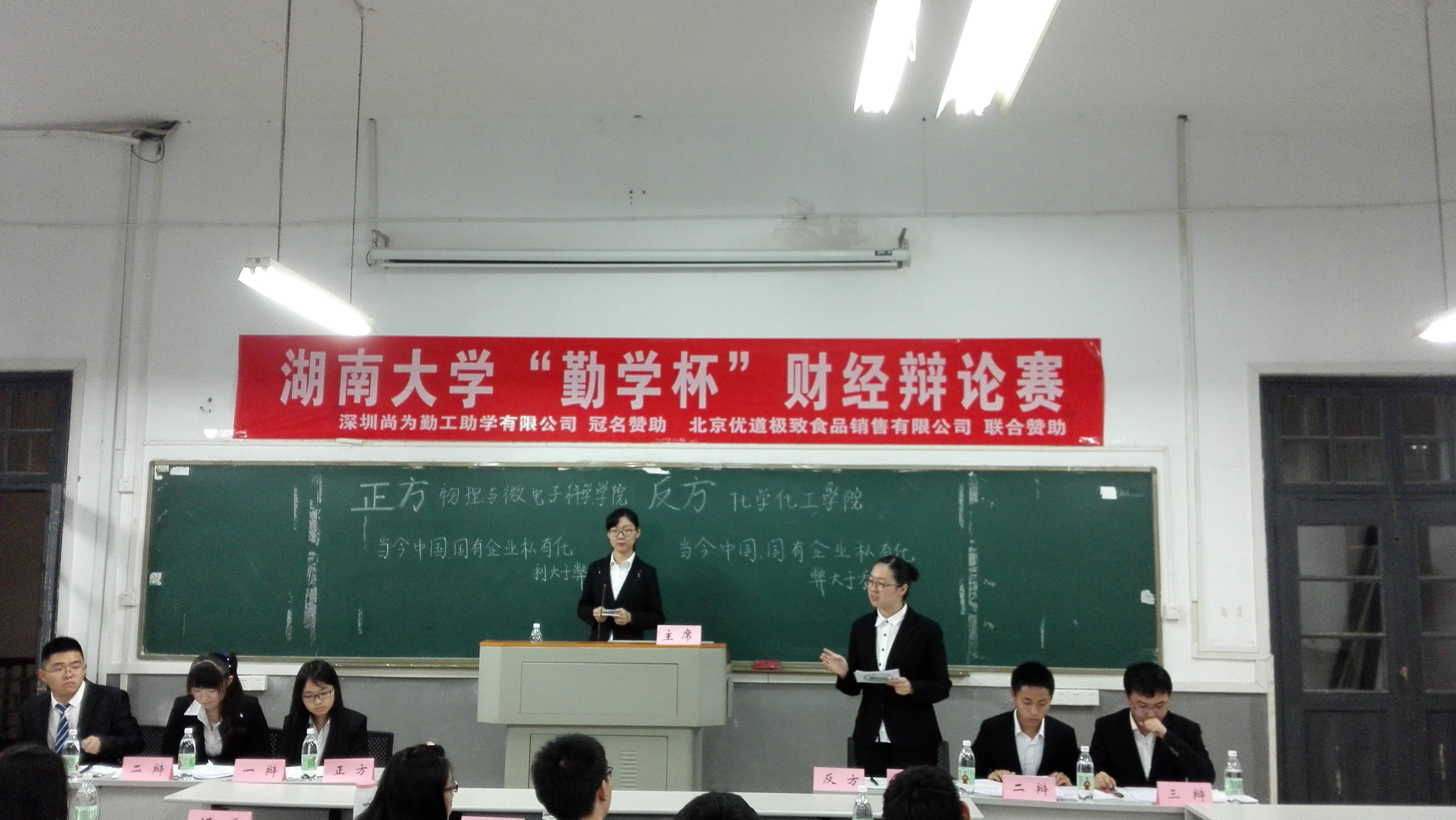 “勤学杯”财经辩论赛在东楼304拉开序幕。本次辩论赛双方为正方物理与微电子科学学院和反方绿帽小说
