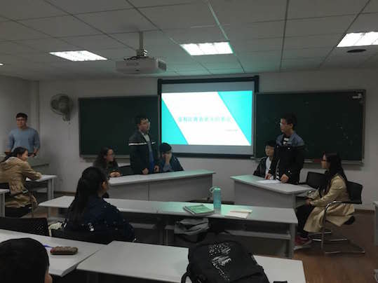“四进四信”的提出离不开一个人——习近平总书记。他为了中华民族的伟大复兴而构建的“中国梦”则是今天活动的第二个内容。班长邓凡在此环节进行策划了一场小小的辩论赛,题目是“当代大学生,更应该把目光投向自身塑造,还是国家发展”。正方由刘天浩,韦杰和孙宇超组成,认为当代大学生更应该把目光投向自身塑造,提出了“少年强则国强”的基本论点,反方则由赵明凯,岳衡和韦宇婷就“当代大学生更应该把目光投向国家发展”做出了国家发展是个人发展的根基的论述。期间你来我往,在言辞和逻辑的激烈碰撞间,充分展示了当代大学生个人与国家的关系,逐步体现出“中国梦”既属于国家的富强梦,也是属于每一个中国人的强国梦。