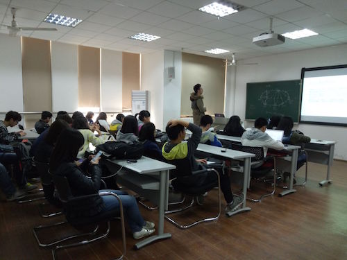 首先进行的是最主要的议题:创建优秀班集体。班长杨亚坤同学向全班同学分析了大一学年院里的创优背景,向同学们讲述了优秀班级体的申报和立项流程,逐条阐述了创建要求、考核标准。在结合本班实际情况进行具体分析后,杨亚坤同学针对班级现状提出了几点要求和建设目标,从学风、寝风、班风三大方面提出了创建优秀班级的具体做法,内容包含了降低挂科人数、提高四六级通过率、创建品牌活动等。为了让同学们更深刻认识到班级现状,他向同学们展示了班级评比数据,直观明确的分析了一年来班级的优势和不足。当看到班级挂科率稍高时,同学们纷纷低头反思自己在学习中的不足;当看到班级四级通过率排名第一时,同学们又情不自禁地为自己鼓掌。听完班长的发言,同学们都表示要积极行动,努力做到班委提出的要求,为班级建设做出自己的贡献,竭尽全力给自己班级争得荣誉。
