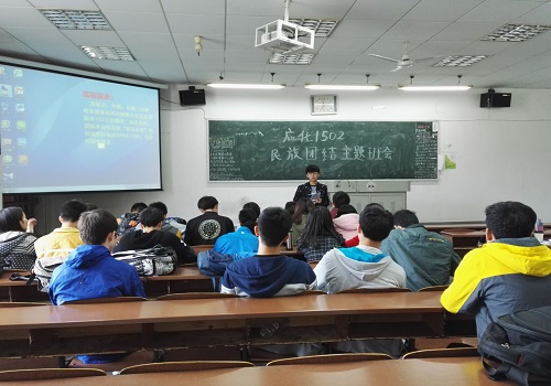 应用化学1502班在复临舍204教室举办了以“民族团结”为主题的班会。班会以少数民族同学的民族风俗讲解、强调加强民族团结的重要性两个板块组成,通过少数民族同学生动形象的描述和班委有深度的总结发言,让同学们切身体会到中华民族文化的多样性以及民族团结的重大意义。