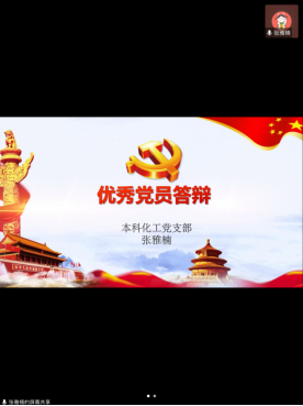 开展2020年度优秀学生党员评选答辩会。基于疫情特殊要求,本次评选采用线上答辩。“云答辩”分为学生党员自述、评委提问及点评两个环节。共有18名学生党员候选人、28名学生党员代表及8位教师党员代表参加此次“云相聚”。