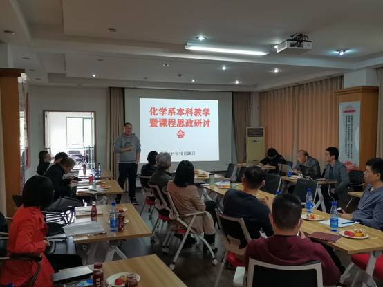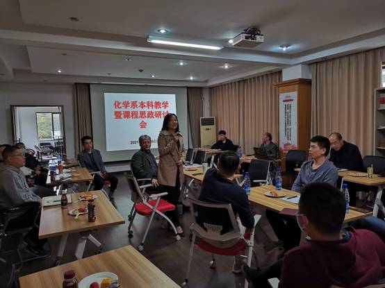 为深入贯彻教育部关于深化本科教育教学改革、全面提高人才培养质量的意见精神,推进化学一流学科建设,落实立德树人的根本任务,提升人才培养质量与教育教学水平,化学系组织召开了本科教学暨课程思政研讨会。研讨会于2021年10月26日15点在学院党员之家进行。党委书记王玉枝、党委副书记刘松、副院长李永军、来院学习交流的新疆师范大学绿帽小说