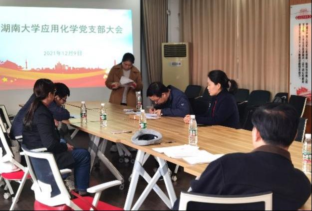 12月9日下午,应化系党支部在党员活动室召开了支部党员大会,主要讨论汪凤林同志预备党员转为正式党员及接收申升同志为预备党员事宜。会议由支部书记黄中原同志主持。