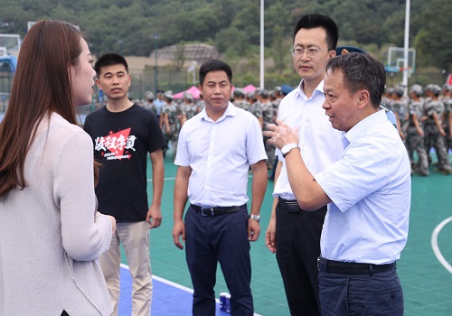 在考察期间,段校长和于书记还对那些因身体因素无法参加军训的同学们进行慰问。他们详细地了解新生们的身体状况和心理情况,耐心地劝慰新生们安心休息,并安慰道每个人的身体素质不同,如若无法坚持不用勉强自己参与军训。段校长和于书记提议道,同学们可以带一些书籍过来阅读,或是做一些课前预习,利用好不能参加军训的这段时间,远离手机,修身养性,通过这种途径也能达到军训的目的,弥补不能参加军训的遗憾。同学们也积极回应道,会好好利用这些时间,用这种方式与训练场上的同学们一起作战。