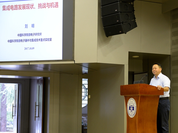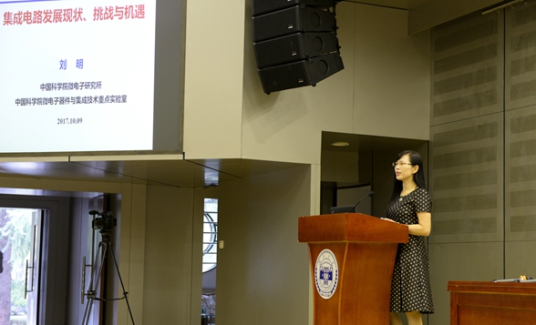 段献忠校长主持学术讲座,对刘明院士的到来表示热烈欢迎,我室两百多名师生代表聆听了此次讲座,逸夫楼报告厅内座无虚席。刘明院士就我国集成电路60年的发展沿革、集成电路制造业现状及面临的挑战、未来集成电路进一步发展趋势进行了深入浅出的讲解,赢得了在场所有听众的阵阵掌声。报告会后,刘明院士与部分老师、研究生进行座谈,对师生们提出的问题进行了耐心细致的解答,特别结合自身职业历程和丰富的生活经验,为女性科研工作者如何解决科研、生活、家庭的矛盾提供了许多有益的借鉴。
