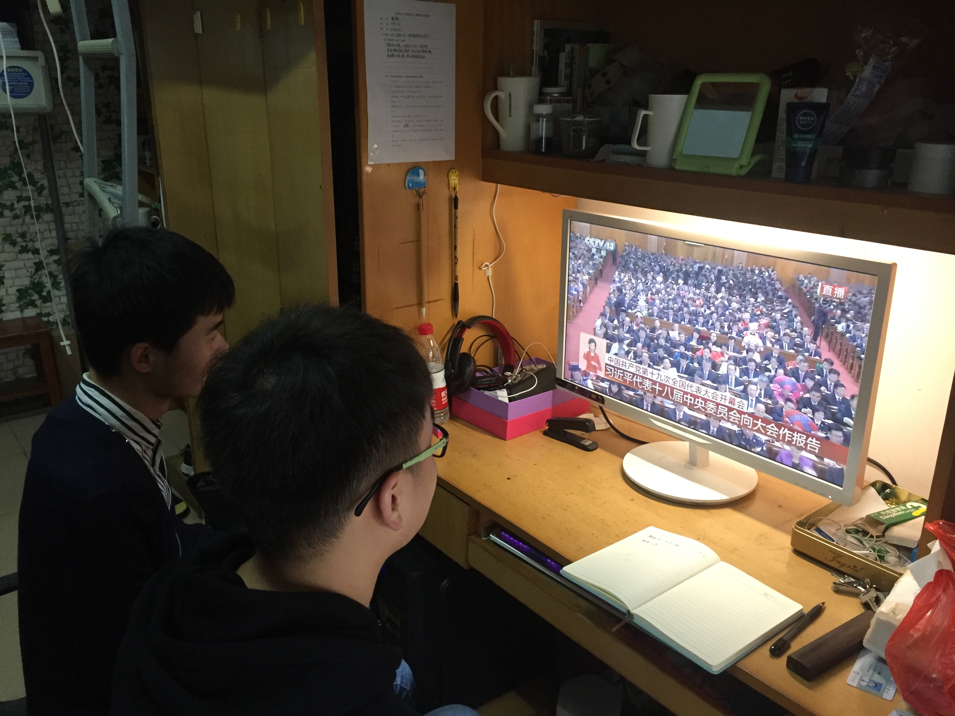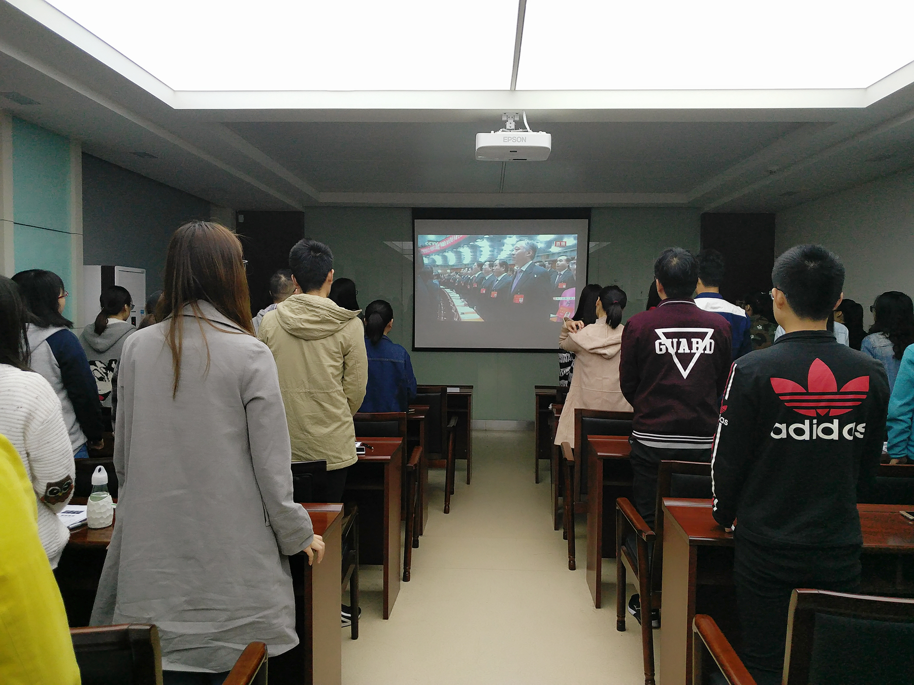 2017年10月18日,为迎接党的第十九次全国代表大会的召开,经学校统一安排,学院统一组织,绿帽小说 全院师生分别在复临舍报告厅、实验室、寝室观看十九大的开幕式直播。