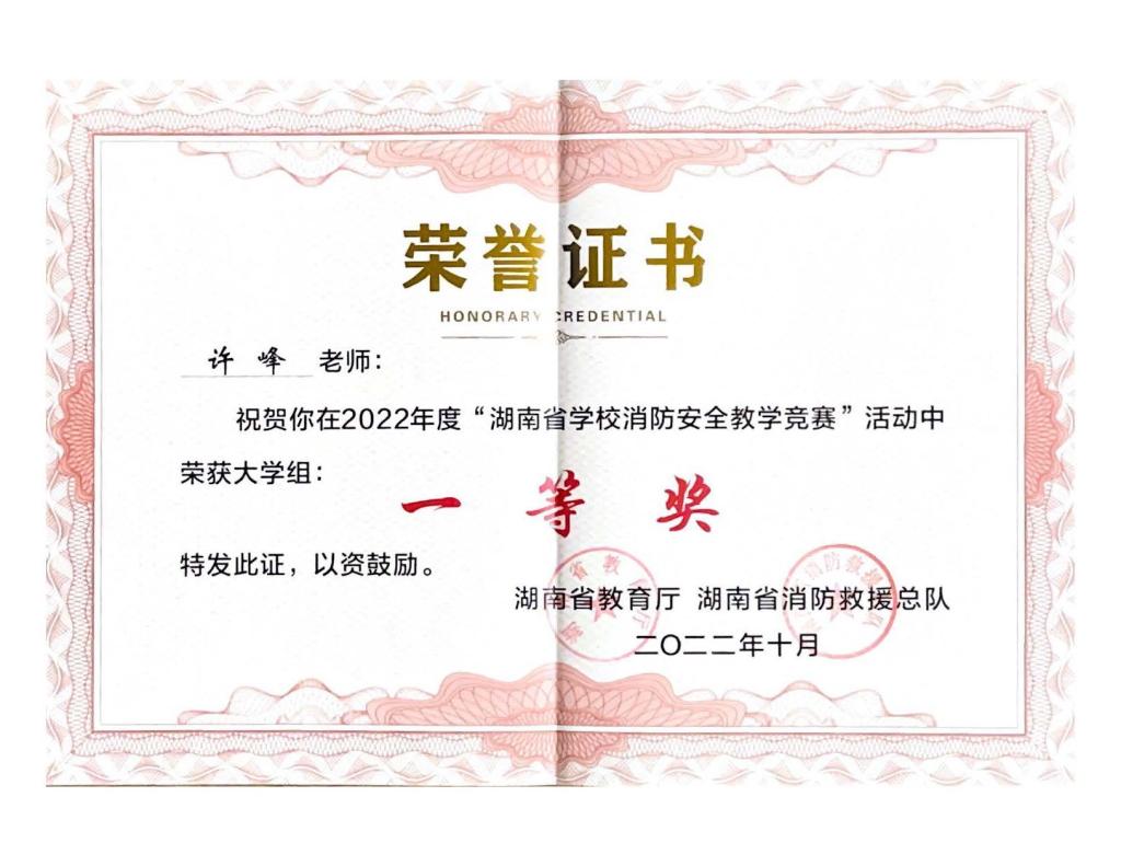 获全省学校消防安全教育教学竞赛大学组一等奖