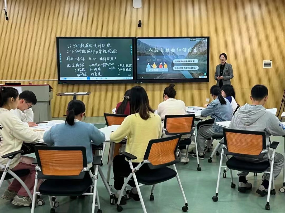 2022级研究生申恒馨在本科阶段上过宦双燕的课程,如今也是她门下的学生。申恒馨说:“宦老师是个很温和的人,她的教学方式从来不会让你对困难的知识点产生抗拒心理。”在讲氮含量测定的方法课上,宦双燕从三聚氰胺奶粉事件引入,讲述氮含量测定的主要方法原理和操作,再到如何选择应用及评价改进实验方法,最后拓展到分析化学前沿研究。宦双燕说:“由浅入深,这样就能把一个知识点说得又生动又深入。”