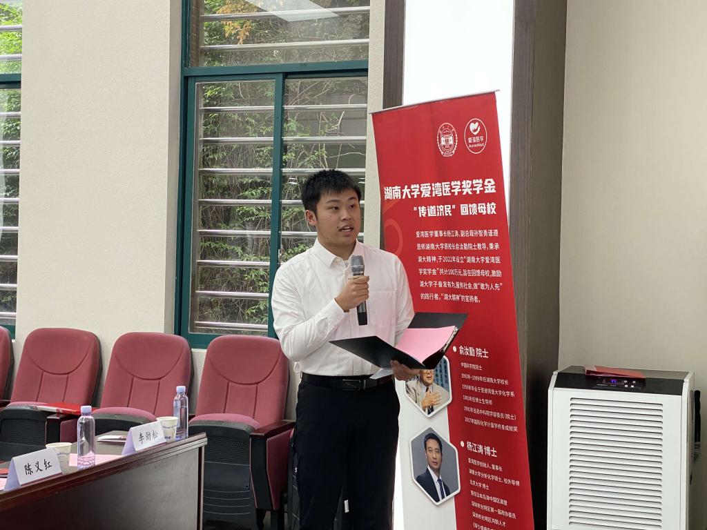 难忘的求学经历、就业创业期间艰难的探索路程、对母院及恩师的深厚情感以及爱湾医学科技集团创新研究成果及企业使命和愿景。妙趣横生的语言、悠扬动听的音乐让同学们沉浸其中,感悟良多。