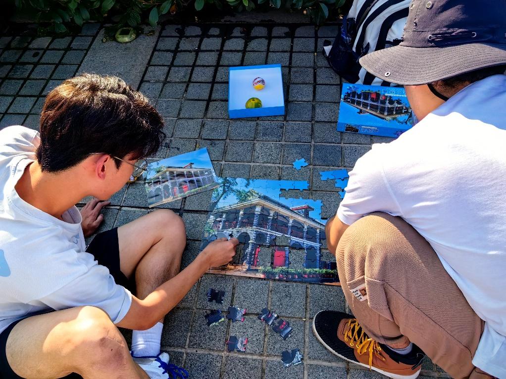 同学们在活动终点完成拼图任务