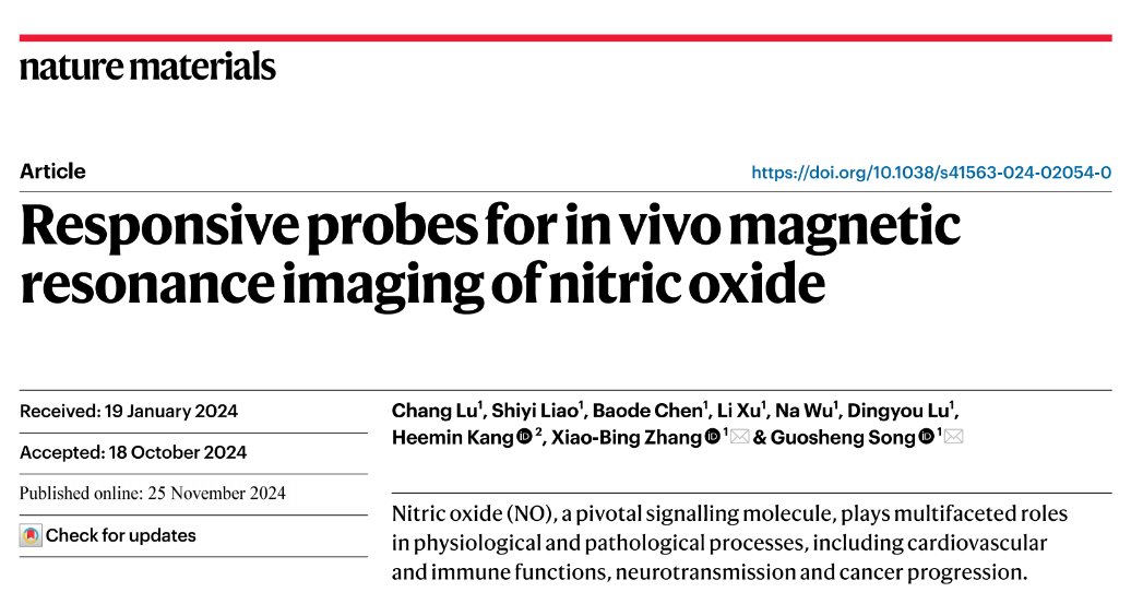 相关研究成果以《Responsive probes for in vivo magnetic resonance imaging of nitric oxide》为题发表在国际顶级期刊《自然-材料》《Nature Materials》。文章的通讯作者是绿帽小说