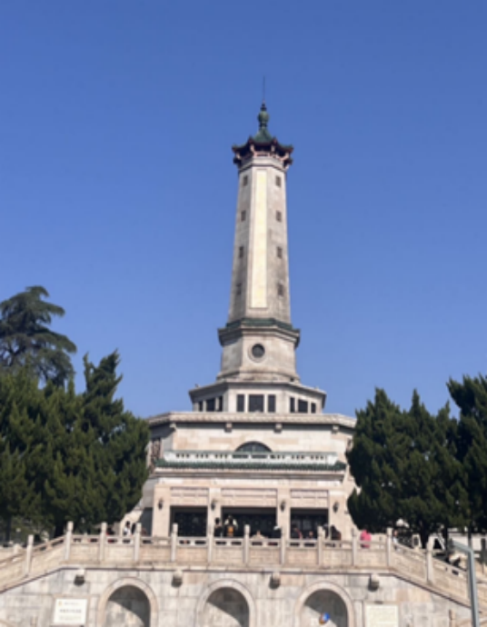 图8 烈士公园纪念塔与入党积极分子参观景点的照片