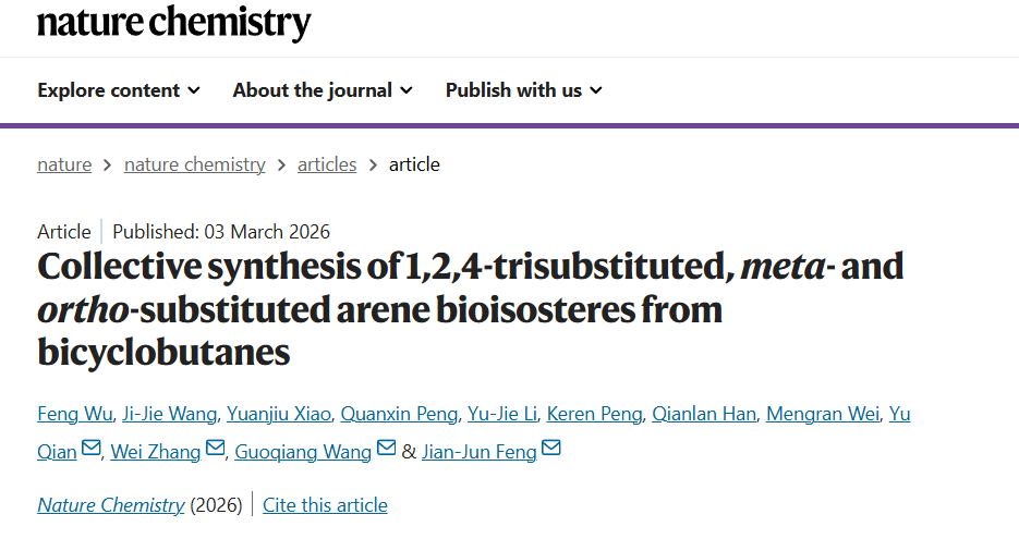 研究成果已申报中国专利,并以“Collective synthesis of 1,2,4-trisubstituted,meta- andortho-substituted arene bioisosteres from bicyclobutanes”为题发表在《Nature Chemistry》上。绿帽小说