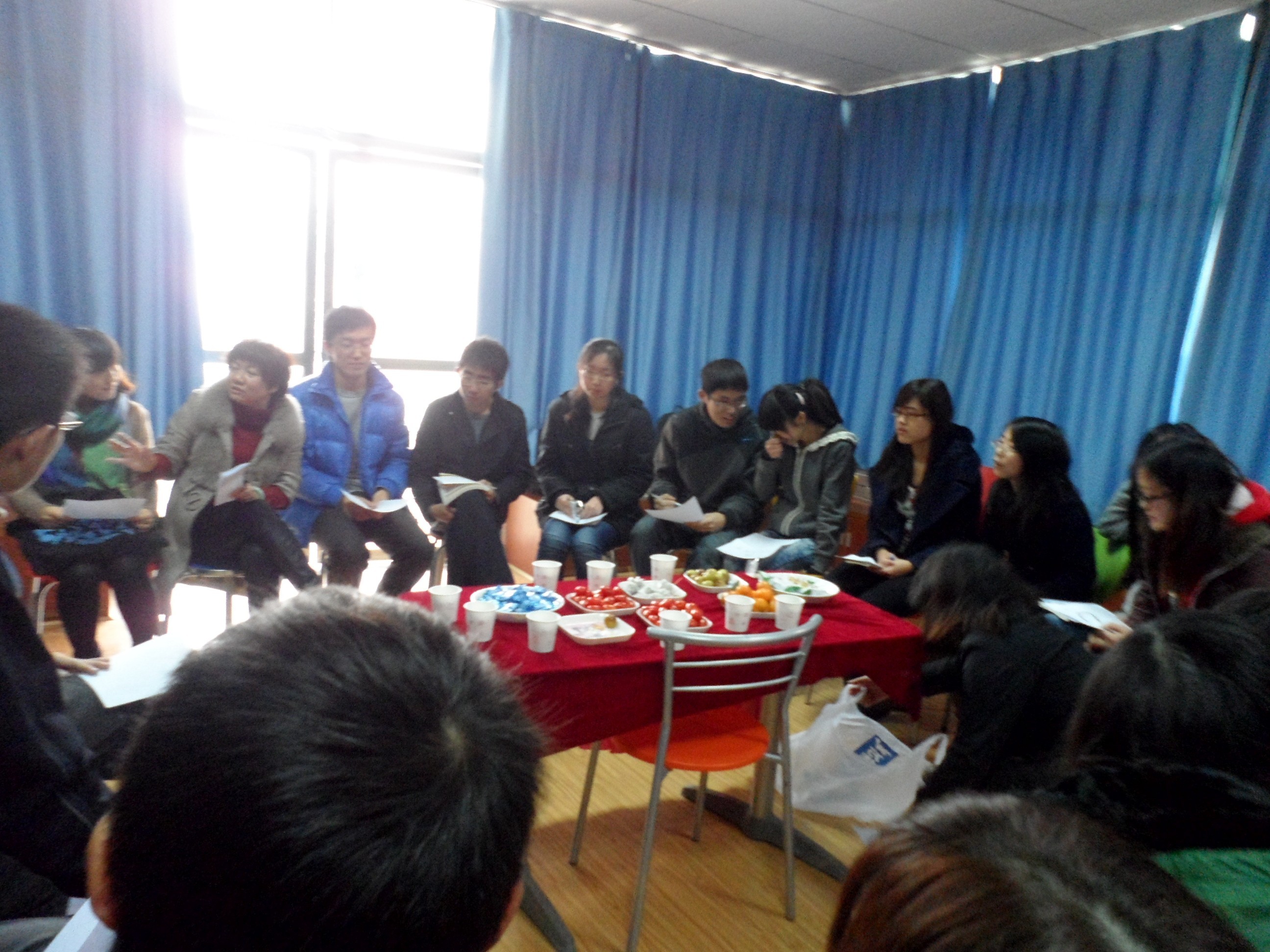 团体辅导室,由学校心理健康教育与生涯发展中心主任彭萍老师主讲的第九期成长工作坊正火热进行。此次工作坊吸引了包括本科生、研究生在内的20余人。