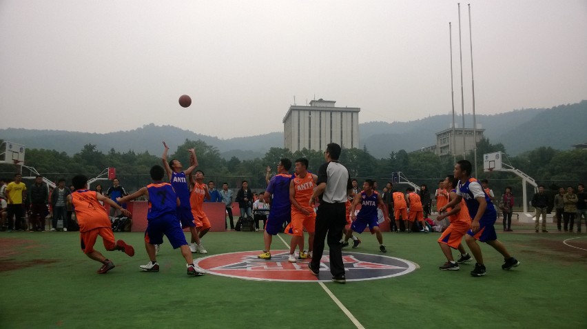 比赛一开始,双方就开始了积极的拼抢,瞬间点燃了场地内观众们的激情。双方啦啦队都在为本方队员卖力地呐喊着,啦啦队的加油声此起彼伏。球场上的队员也都不甘示弱,挥洒汗水,为着自己学院的荣誉而努力。第一节比赛最终以7:10的比分结束,我方化工院篮球队小比分落后。