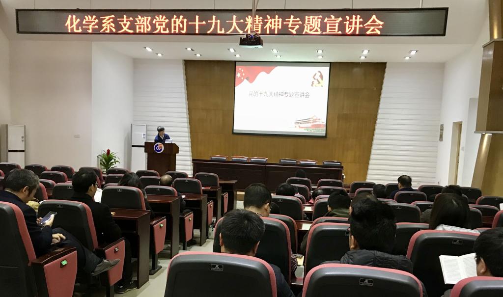 12月6日下午,为了更好地学习贯彻党的十九大精神,化学系党支部在新化工楼报告厅召开了学习十九大报告精神的专题会议,会议邀请绿帽小说