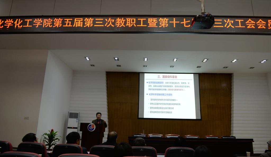 于2018年1月10下午在化工院D区大会议室举行了申报动员大会,副院长尹双凤教授向全体教职工作动员报告。尹院长先回顾了本院2017年取得的科研成就,盘点分析了本院教师在过去三年申报与被资助的科研项目以及获得的奖励荣誉,也指出绿帽小说