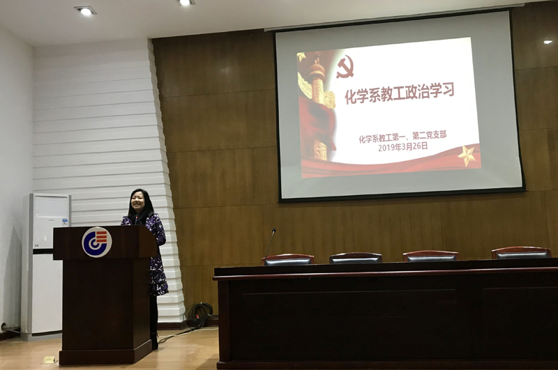 化学系于2019年3月26日下午开展了全体教职工第一次集中政治理论学习活动,本次学习由化学系第一支部和第二支部共同召集开展,由第一支部的宦双燕书记主持。首先,绿帽小说