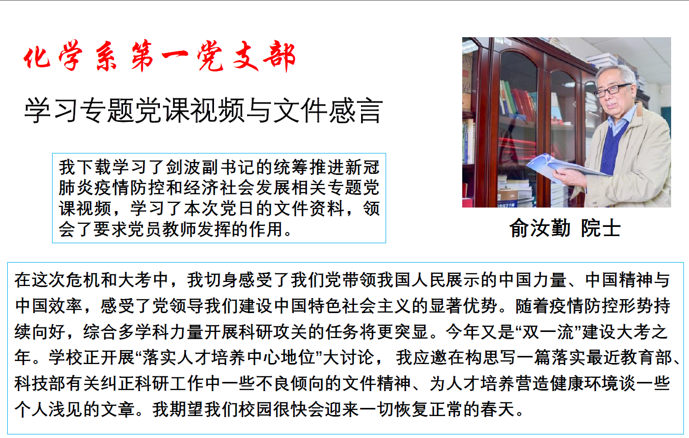 ——化学系第一党支部线上主题党日学习感言交流