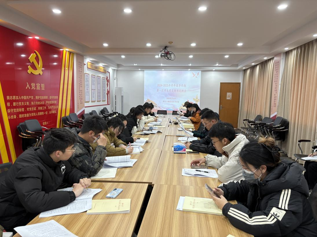 会议首先围绕新学期学生党建工作要点展开部署。徐晓宇老师结合学校党委工作要求,从“深化主题教育实效”“规范党员发展流程”“创新支部活动形式”三方面提出具体要求。强调,各支部要以学习贯彻习近平新时代中国特色社会主义思想主题教育为契机,严格落实“三会一课”制度,推进理论学习与实践活动深度融合;同时要求各支部严把党员发展“入口关”,优化培养考察机制,夯实基层组织建设根基